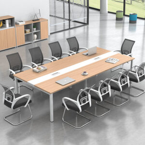 Bàn họp văn phòng chân sắt BH01 được làm bằng mặt gỗ công nghiệp MFC. Mặt bàn dày 25mm. Chân sắt sơn tĩnh điện chống gỉ theo thời gian. Bàn có kiểu dáng đơn giản, mặt bàn hình chữ nhật , với chiều cao tiêu chuẩn. Thường được để trong phòng họp, phù hợp với nhiều loại ghế khác nhau, giúp tô điểm cho không gian văn phòng.
