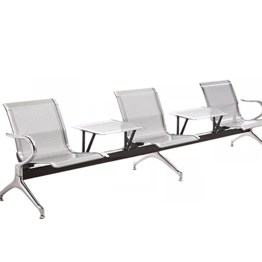 Ghế băng chờ kèm bàn BC05-3 sản phẩm với kết cấu vững chắc, kiểu dáng hiện đại thích hợp sử dụng trong hội trường, phòng chờ sân bay. Ghế phòng chờ khung thép. Đệm và tựa ghế tôn đột lỗ, bề mặt sơn tĩnh điện màu nhũ bạc. Chân và tay ghế mạ Ni-Cr, sử dụng chân tăng chỉnh phù hợp với các mặt bằng khác nhau.