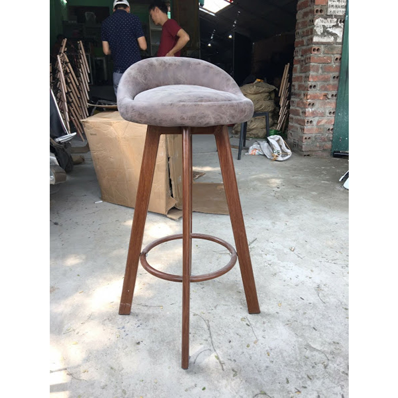 Hình ảnh Ghế bar xoay chân sắt giả gỗ bọc đệm nỉ – DL3143