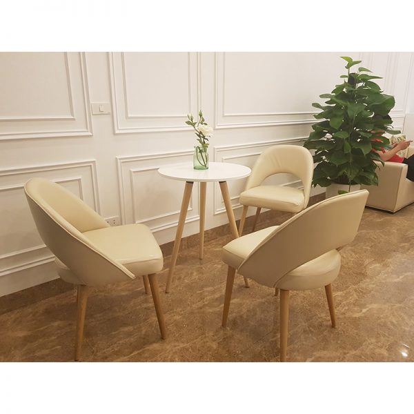- Ghế với kiểu dáng phần cong hình vòng cung bo lưng tạo cảm giác thoải mái không gò bó, chân gỗ sồi bền đẹp chắc chắn.