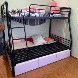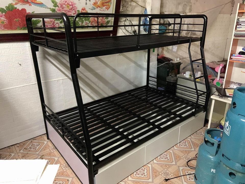 Giường sắt lệch tầng 1m2 lệch tầng nên kiểu thang leo rất tối ưu, leo tầng 2 vô cùng dễ dàng và an toàn, thích hợp cho phòng ngủ, gia đình hoặc homestay, đa dạng kích thước sẽ làm cho không gian của bạn sẽ gọn gàng và tiện nghi hơn.