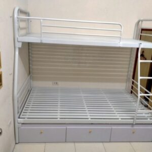 Màu sắc: Trắng, Đen, Kem Có thanh chắn giường (tầng 2) Chân giường bằng thép ống tròn , có nút chân cao su gắn và khung.