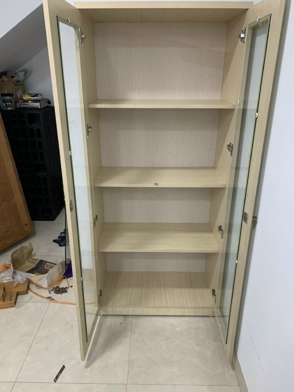 - Chất liệu: gỗ công nghiệp, kính